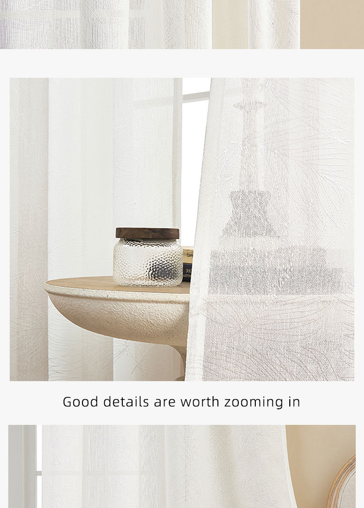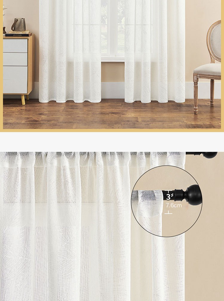 Amazon Cross-Border Sheer White Curtains with Leaf Pattern